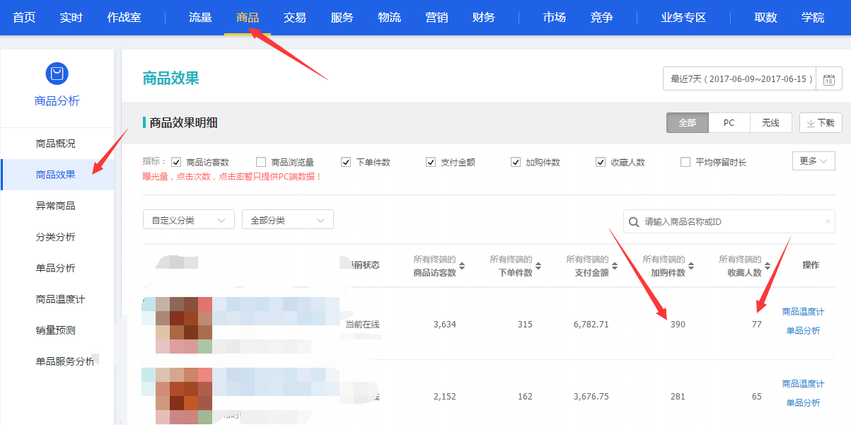 至于如何观察加购和收藏情况,我们可以从生意参谋看到:
